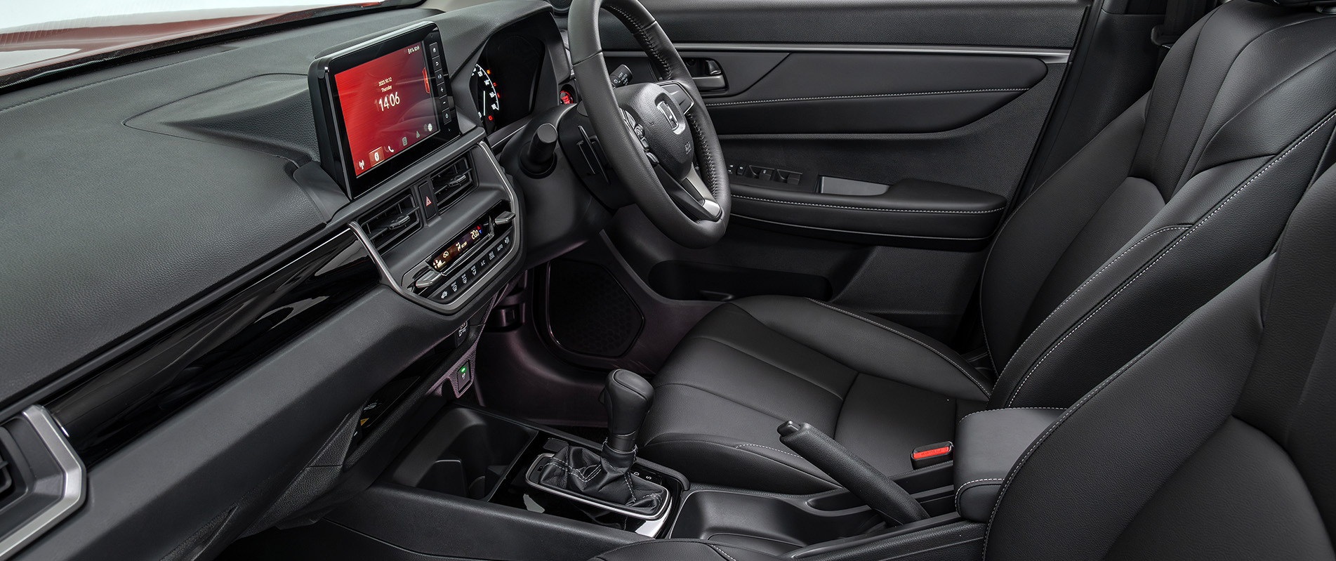 The All-New Honda Elevate's premium interior features a minimalist aesthetic and a sunroof for a bright, airy feel. With ample room for front and rear passengers, plus the largest luggage capacity in its class at 458L, the Elevate ensures comfort and convenience.